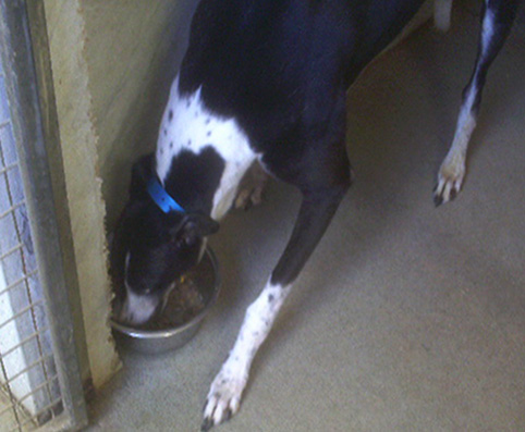 Charm has never been in a home environment but tries to be clean in his kennel. New owners will need to be a bit understanding at the start and give him time to learn the house rules. It generally takes greyhounds 10-14 days to start to settle in a home, and really all they need is time and patience.