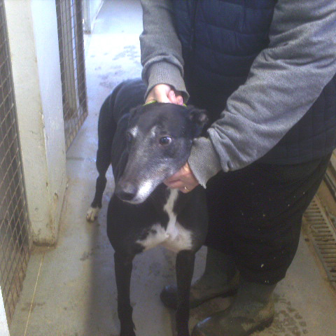 Charm is really well behaved around other greyhounds but hasn't met any small dogs yet so care must be taken with introductions. He is currently sharing his kennel with another greyhound without any issues.
