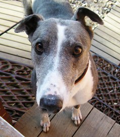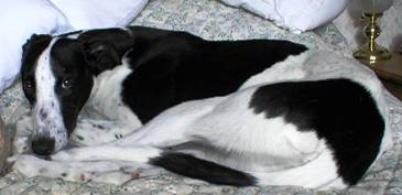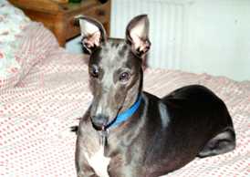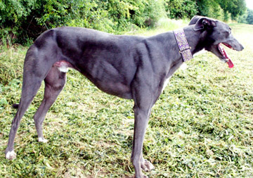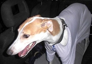 This is Bella, she came to us as a foster in early 2009 and I couldn't bare to part with her. As I have been involved in the showing world in the past, I decided to register her with KC and enter her for CRUFT'S. It just goes to prove that there is a life out there after the racing is over. Pat Wells |