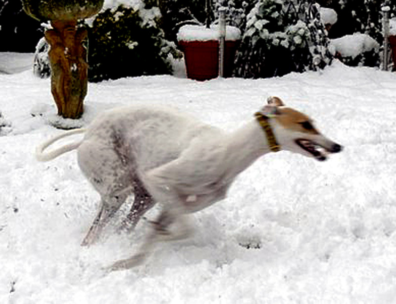 chasing around the garden in the snow. |
