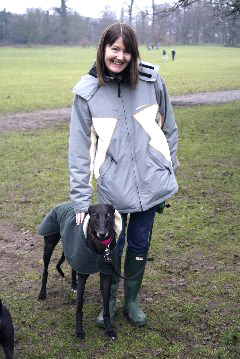 Sam with KGC lurcher Jack on Earlham Park in Norwich. |
