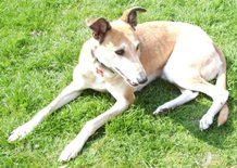of Kerry Greyhound Connection. Blondie is a lurcher who was