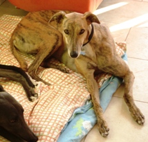 Misha now lives in London with Steve and Fiona another greyhound called Hawk. |