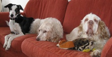 Joey (aka Joe) on holiday with his girl friends Pearl (white and black) who is another KGC hound and Molly.