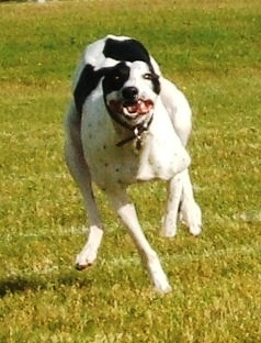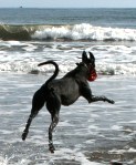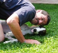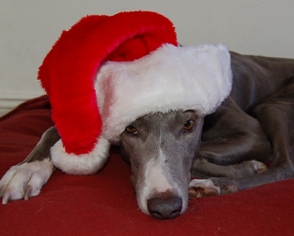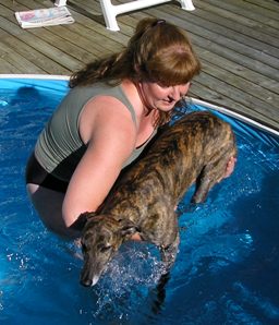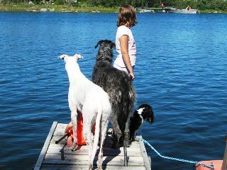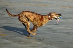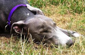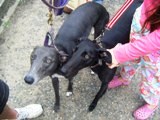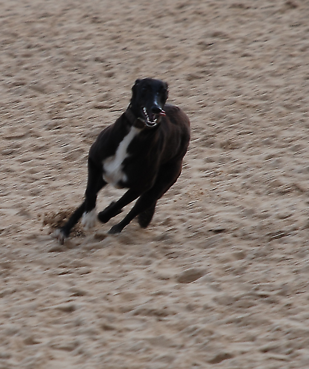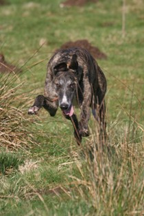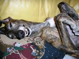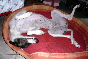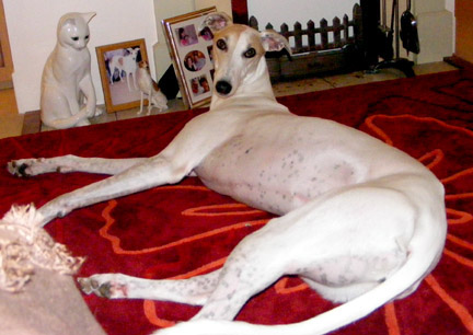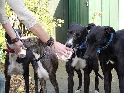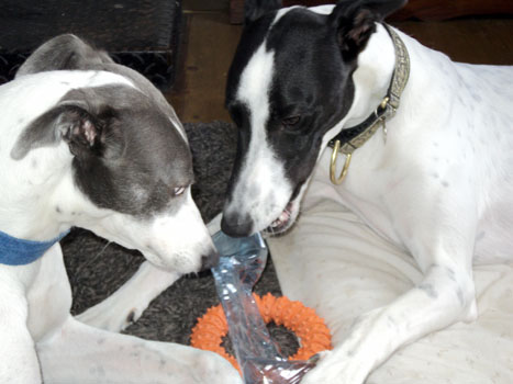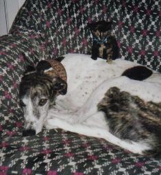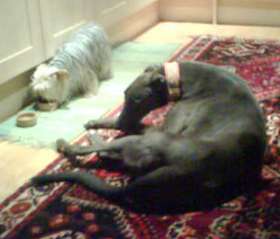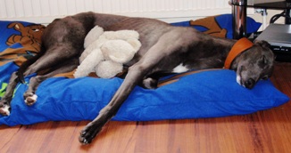 learns the essential greyhound skill of 'fitting a big dog onto a small