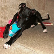 Tia who has been adopted by Nicola and Alan of Cromer is having difficutly trying to decide which toy to pounce on next!