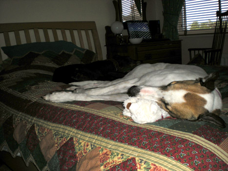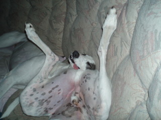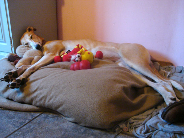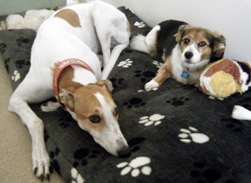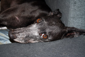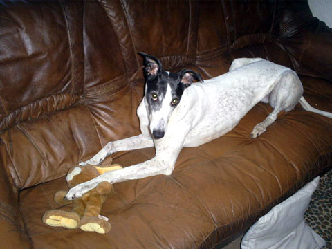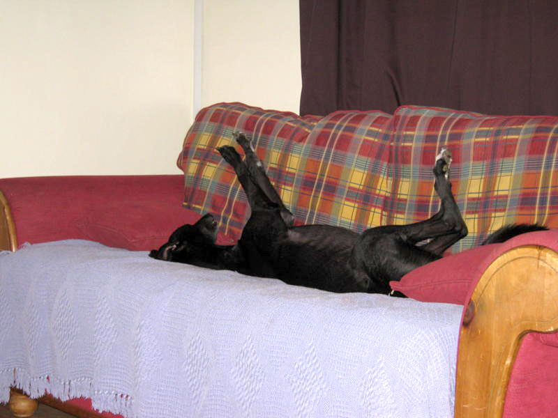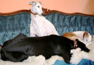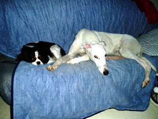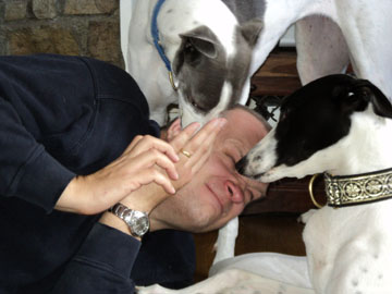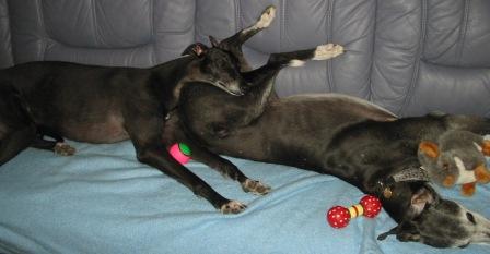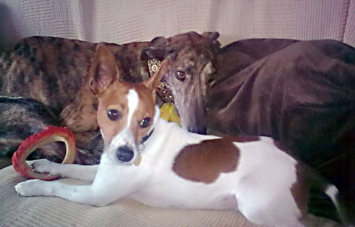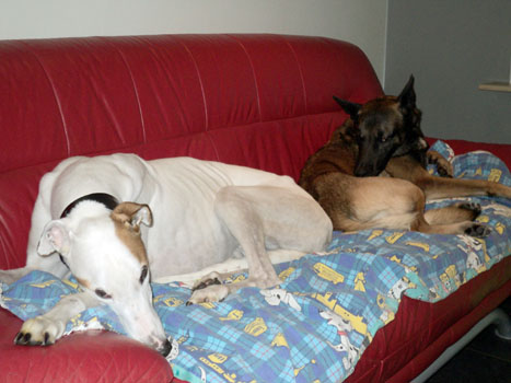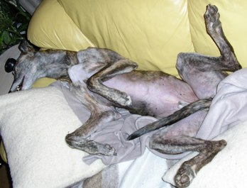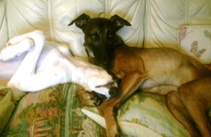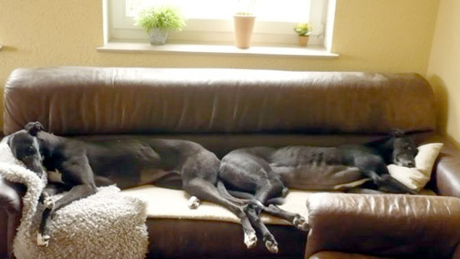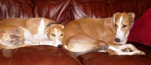 Poor Frank has to share his sofa with a couple of spanish galgos |