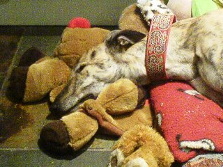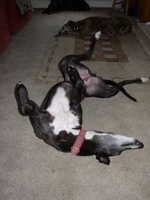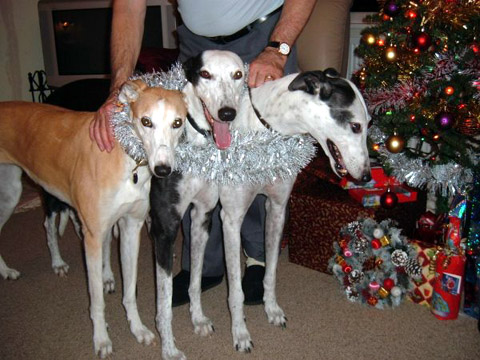 Monty and Frosty the Daschunds, Angel the blue Greyhound and Pepper the Whippet. |