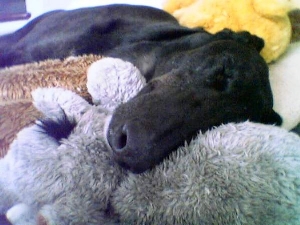 Miller loves his cuddly toys and has a 'mad half hour' every now and then. Blakey is more partial to his squeaky toys! They are both couch potatoes and absolutely love their cuddles. They've slotted into our lives like an old pair of slippers.
