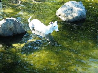 Rex learns to swim in case he the 'walking on water' thing doesn't work out |